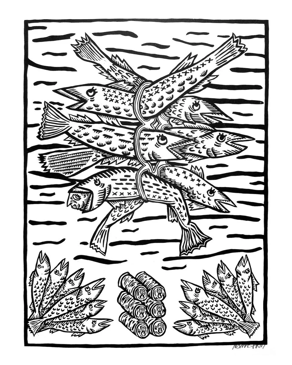 Adrienne Wilber is a mariner and artist from Sitka, Alaska. She draws inspiration from the boats she works on, the crews she works with, the communities of Alaska and the Pacific Northwest, and Tlingit Aaní, including the Tongass National Rainforest.